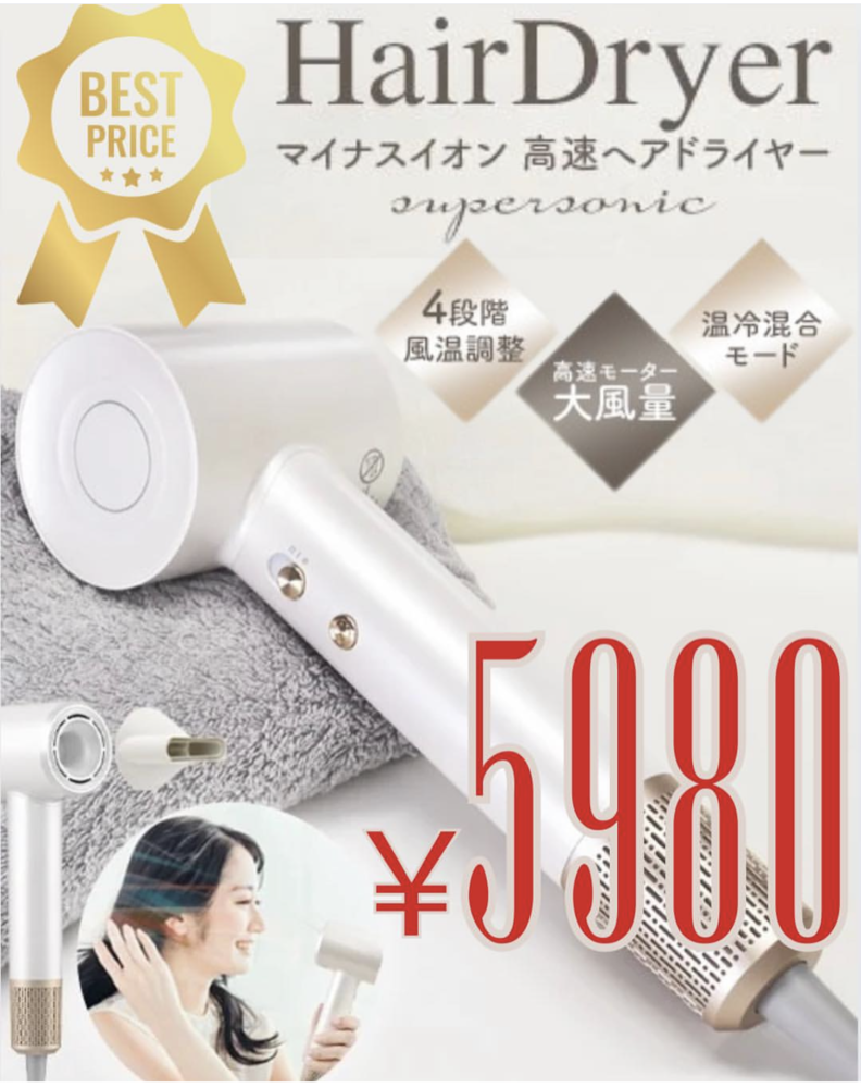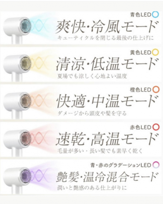 4段階の風温調整!高速マイクロモーターで速乾! マイナスイオン 高速ヘアドライヤー
